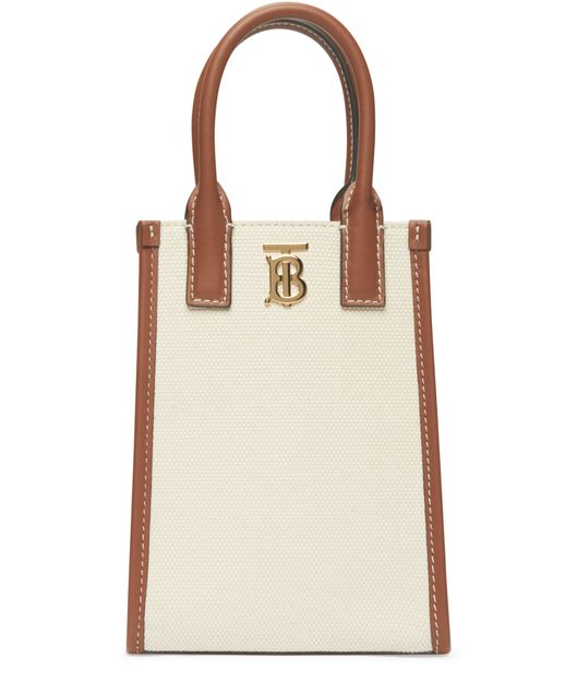 迷你专属标识装饰帆布拼皮革托特包