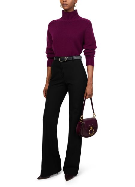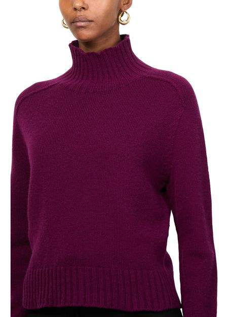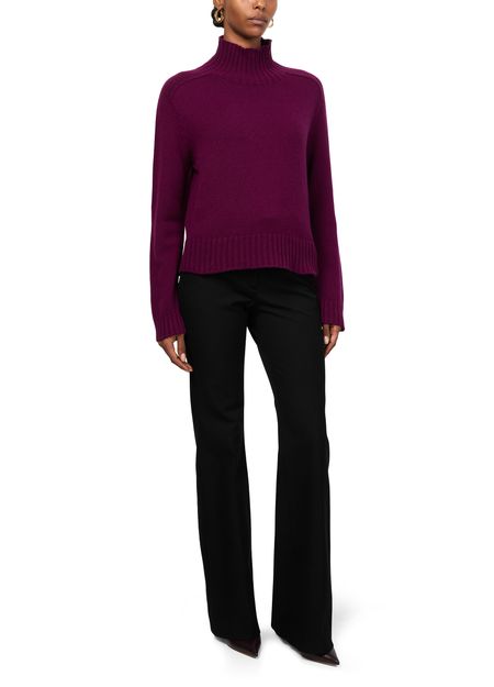 Unveil Eric Bompard's ribbed mockneck knitwear, featuring a regular fit and cropped length. Its long, cuffed sleeves add a touch of sophistication. Ideal for transitioning between seasons, this piece pairs effortlessly with tailored trousers or a casual skirt, offering versatile styling options.