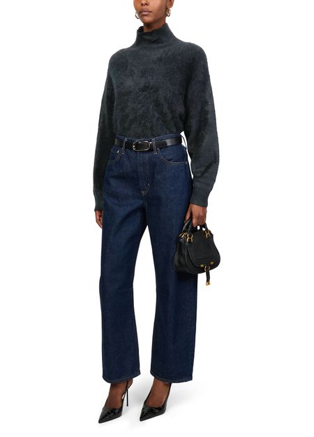 Introducing Eric Bompard's oversized ribbed turtleneck knitwear, a timeless piece that blends style and comfort. The long-sleeved design with cuffed sleeves provides a cozy yet chic silhouette, perfect for any occasion. Its ribbed texture adds depth, making it a versatile staple in your wardrobe.
