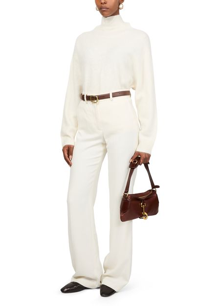 Introducing Eric Bompard's oversized ribbed turtleneck knitwear, a timeless piece that blends style and comfort. The long-sleeved design with cuffed sleeves provides a cozy yet chic silhouette, perfect for any occasion. Its ribbed texture adds depth, making it a versatile staple in your wardrobe.