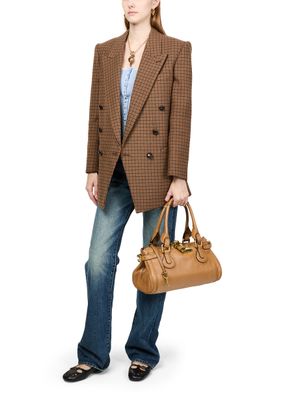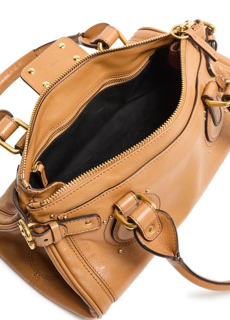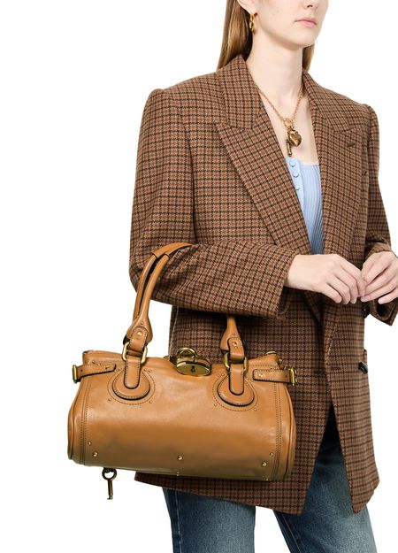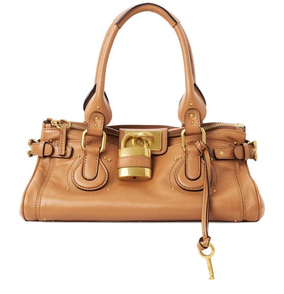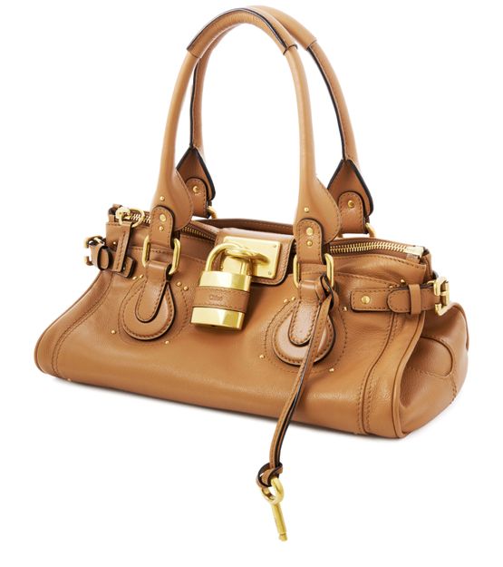 Reveal Chloe's Paddington handbag, crafted from smooth leather with signature saddle stitch and contrast stitching. Double handles and a gold clasp add refined appeal, while a zippered interior pocket and large compartment ensure practical elegance. The engraved front logo and gold finish complete this sophisticated shoulder bag.