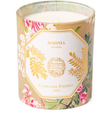 起初,我们感受到的紫罗兰叶子的绿植气息所透露出的青翠凉意。 随后,它释放出层层充满阳光和蜜意的金色花香调,与其近似橙树香味的清甜花朵相呼应。刺槐香气的圆润充盈完美烘托了糅合绿植与花香的脂粉香调。 哑光灰褐色玻璃瓶身上绘有源自 17 和 18 世纪的彩色植物插画。 八角形标签中央印有烫金刺槐树枝。
