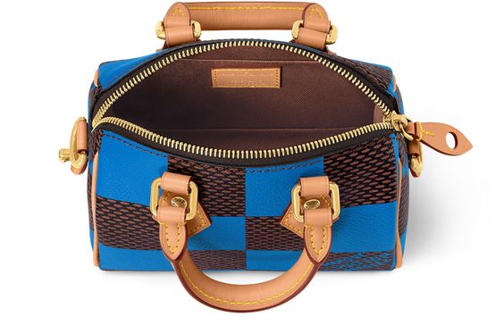 Speedy 18 Bandoulière 手袋以精巧设计演绎 1930 年代的 Speedy 手袋,采用创意总监 Pharrell Williams 打造的 Damier Pop 涂层帆布勾勒经典线条,为 Damier 棋盘格图案渲染明丽色调。