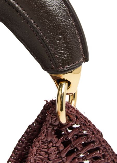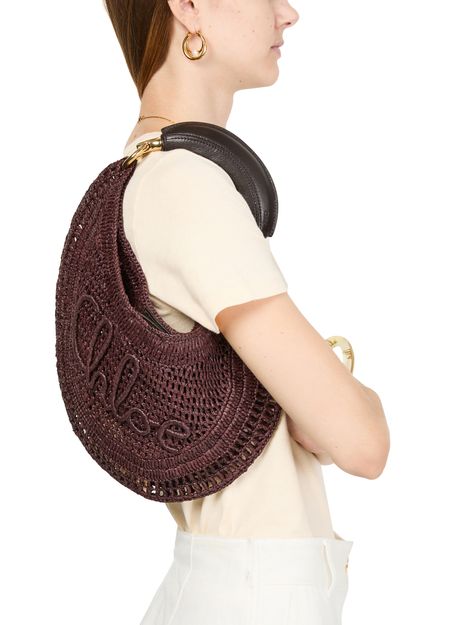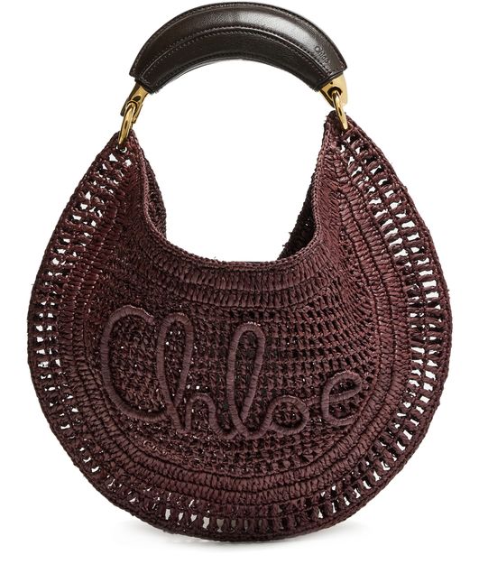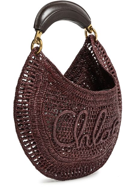 Elevate Chloé's Summer Banana bag - a stunning blend of elegance and function. Hand-carried or worn on the shoulder, this basket-style accessory features a magnetic closure, visible topstitching, and an engraved logo. Its gold finish, single compartment, thin strap, and single handle complete the modern look.