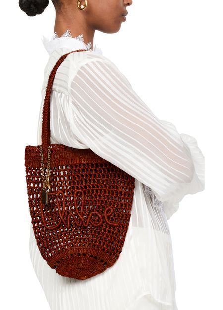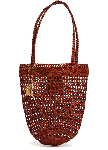 Reimagine Chloe's Summer Banana tote bag, a masterpiece of open weave artistry. This basket-style tote, adorned with gold-tone charms, is both elegant and functional. Featuring a single compartment with interior card slots and double handles, it offers a seamless blend of style and utility.