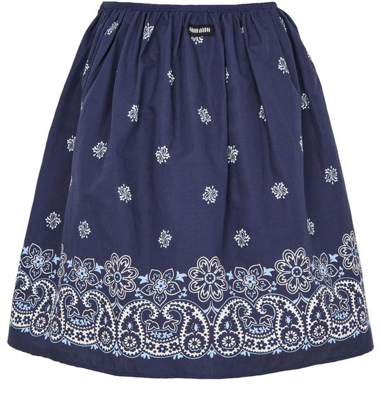 Indulge Miu Miu's Bandana midi skirt, a knee-length masterpiece featuring an elasticated waist for optimal comfort. Its vibrant floral print and pleated details create a stunning silhouette, perfect for any occasion. Effortlessly transition from day to night with this versatile piece.