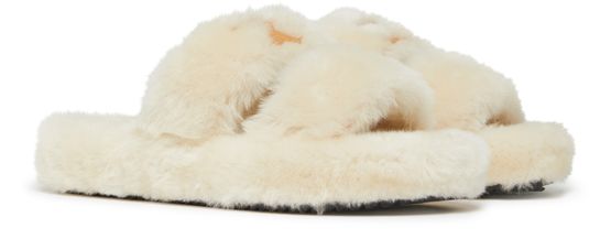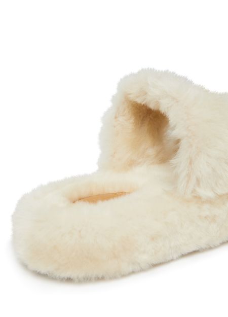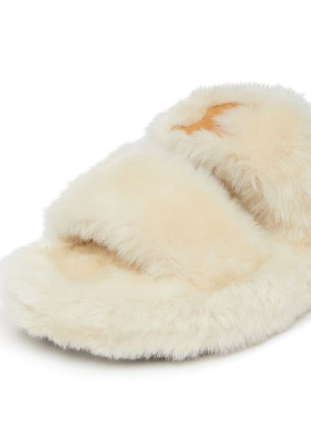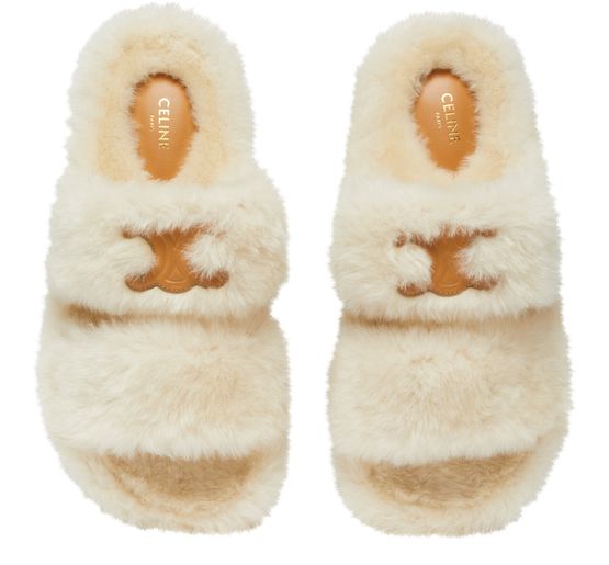 Fur slides Triomphe羊毛革露趾拖鞋