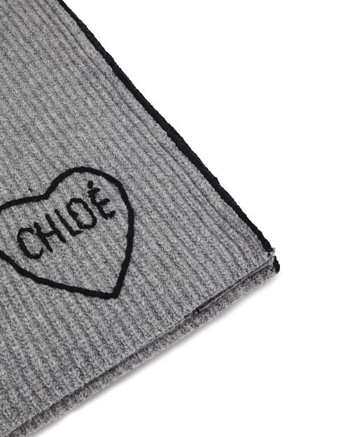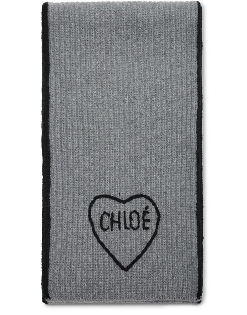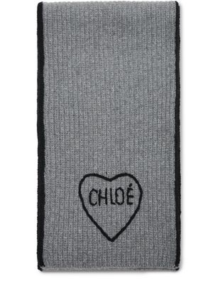 Reveal Chloe's striped wool scarf, where a contrasting color stripe on the edges and refined embroidered details create a modern statement. The subtle embroidered logo adds a signature touch, making this accessory a standout addition to any contemporary wardrobe.