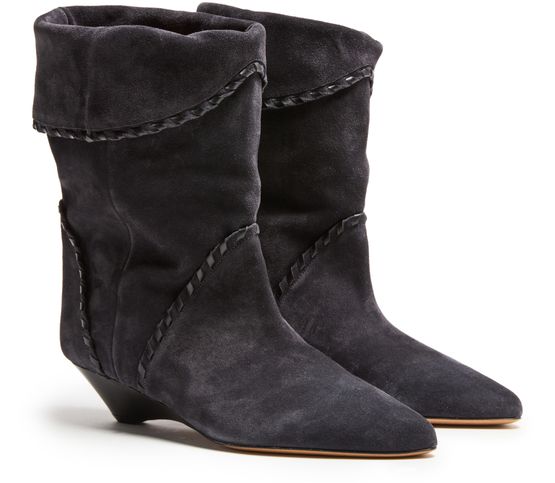 Unveil Isabel Marant's Edoa ankle boots, crafted in sumptuous suede. These boots boast a sophisticated pointed toe and a comfortable wedge heel, blending style with practicality. The closed design ensures a snug fit, making them the perfect choice for a chic and polished look.