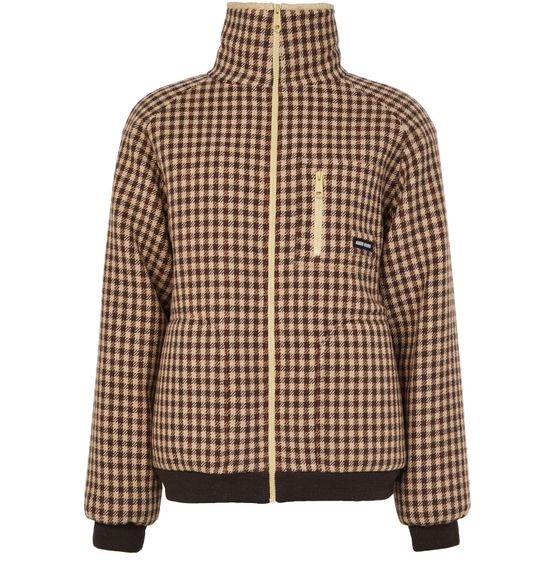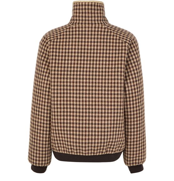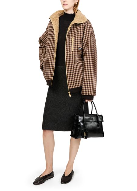 Introducing Miu Miu's fur coat, a masterpiece of modern elegance. This regular fit, short-length coat features a striking houndstooth pattern, complemented by a practical zipper closure. Long sleeves and zipped breast pockets add functionality, while side pockets enhance its versatile appeal. Perfect for any occasion, this coat redefines style.