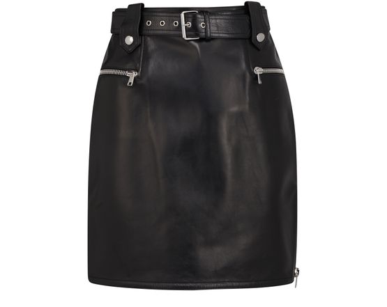 迷你裙是您炎热天气尽显美感、舒适的理想服装。 这款 Alexander McQueen 黑色皮革迷你裙,正是您的品质之选。