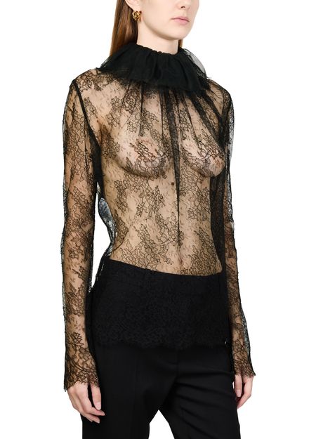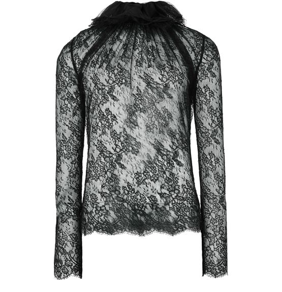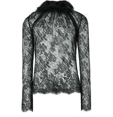 Introducing Alexander McQueen's long-sleeved lace top, a masterpiece of elegance with its high-neck and slim fit. The intricate lace design is complemented by a back buttoned fastening, offering a refined silhouette. Perfect for any occasion, this top pairs beautifully with both casual and formal ensembles.