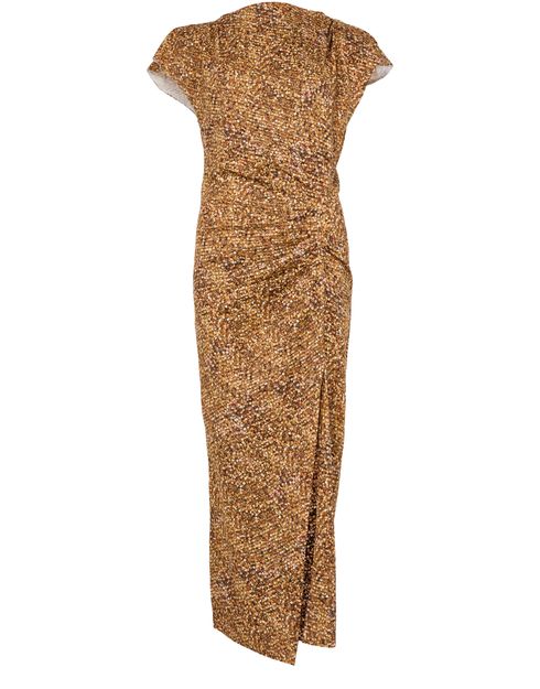 Reveal Isabel Marant's Nadela dress, a captivating midi creation with draped details and a stylish front slit. This cap-sleeved design embodies modern elegance, making it ideal for both casual outings and evening events.