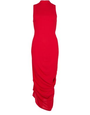 Reveal Jacquemus's The J dress, a slim fit midi wonder with a high-neck and sleeveless design. The back zipper closure and draped detail add sophistication, making it perfect for any elegant occasion.