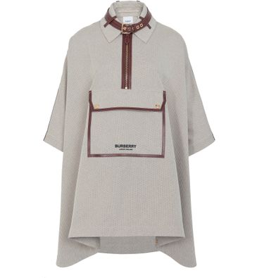 此款 Burberry 单品新颖的设计风格游走于大衣和披肩之间,宽松、精美的剪裁在正面大袋的装点下更具设计气息。