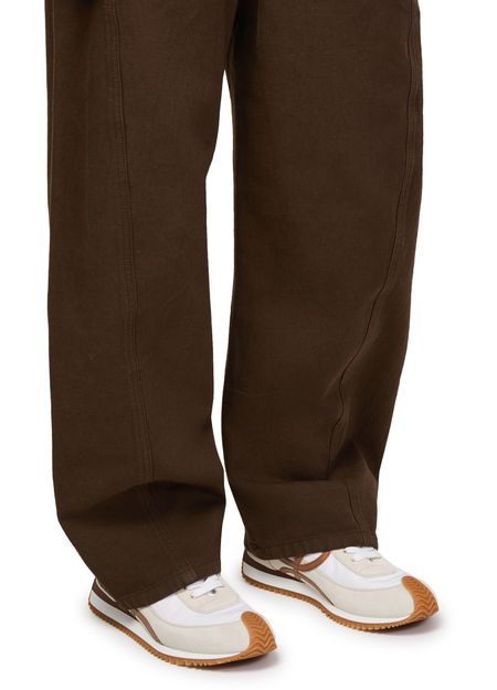 Reveal Loewe's suede running sneakers, crafted with a closed round toe and flat heel for everyday ease. The visible stitching and contrast details add a modern edge, while laces and a strap ensure a secure fit. A logo on the side brings signature style to this contemporary pair.