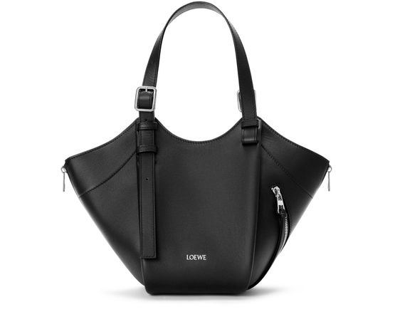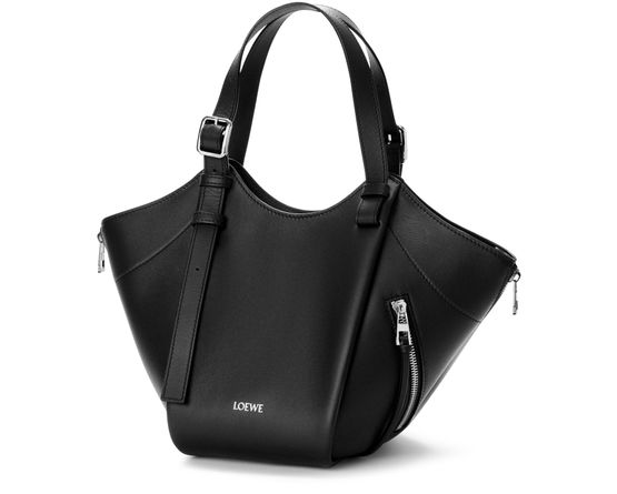 Reveal Loewe's Hammock Flip bag, crafted from smooth leather with double handles for versatile carrying. The front logo in silver letters and visible stitching highlight refined craftsmanship, while the silver finish adds a modern touch. This shoulder bag seamlessly blends iconic design with everyday sophistication.