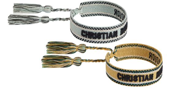 - 描述 : 正面饰以“CHRISTIAN DIOR J'ADIOR”标志刺绣, 滑动绳结开合搭配流苏, 套装包含 2 件手链, 可调节长度:约 14 - 23 厘米.