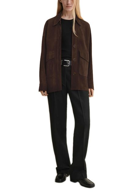 Reveal Arma's Kaylee suede jacket, a short silhouette crafted from supple suede with a refined button fastening. Long sleeves and flap pockets add both style and function, making this piece a versatile choice for elevating everyday looks or layering for evening outings.