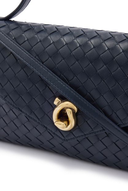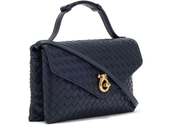 Unveil Bottega Veneta's Knot Lock crossbody bag - a masterpiece of modern elegance. Featuring an adjustable strap and double handles, this versatile bag can be hand carried or worn on the shoulder. The gold finish and twist lock closure highlight its sophisticated design, while the interior patch pockets add practicality.