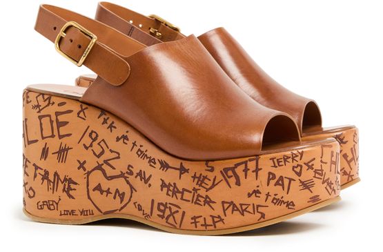 Chloé's Maxule sandals showcase exquisite craftsmanship with visible stitching and an engraved logo. The open round toe design offers a breezy feel, while the logo-printed insole ensures comfort. With a stunning gold finish, these sandals elevate any outfit, making them the perfect choice for sunny days and stylish outings.