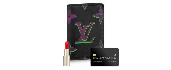 本款口袋钱夹在柔软牛皮革表面描绘荧光 Monogram 图案,令 LV 字母和 Monogram 花卉仿佛置身聚光灯下。紧凑构型囊括卡片夹层和口袋。