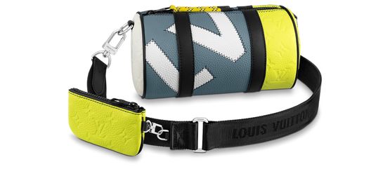 Polochon 手袋拼接粒面牛皮革和 Monogram 压纹 Taurillon 皮革,以醒目缝线抒写大号 LV 字母。可拆卸肩带标注路易威登标识,其上通过钩扣固定的零钱包亦可作为短款钱夹收入其他手袋。