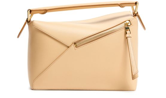 Unveil Loewe's Puzzle Edge small bag, a masterpiece in smooth leather. This crossbody mini bag combines functionality with elegance, featuring a zippered front pocket, adjustable wide strap, and silver finishes. Its single handle and visible topstitching capture the essence of contemporary style.