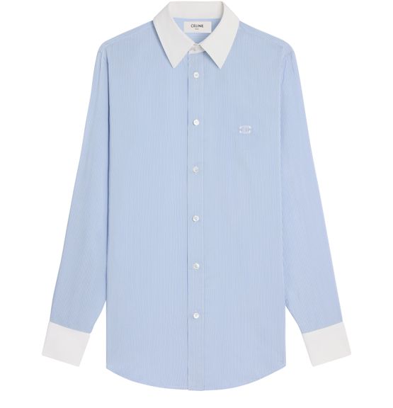• 描述 : Triomphe embroidery, classic fit, contrasting drugstore collar, contrasting buttoned cuffs, 7 mother-of-pearl buttons, 1 mother-of-pearl button on the cuffs, rounded hem.