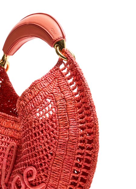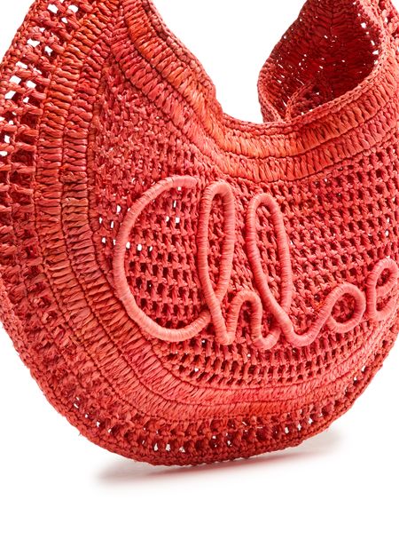 Elevate Chloé's Summer Banana bag - a stunning blend of elegance and function. Hand-carried or worn on the shoulder, this basket-style accessory features a magnetic closure, visible topstitching, and an engraved logo. Its gold finish, single compartment, thin strap, and single handle complete the modern look.