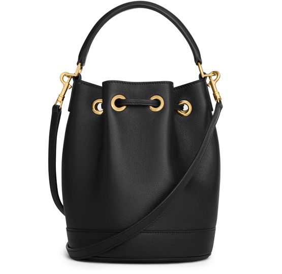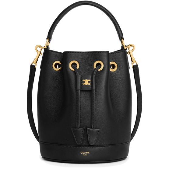 Reveal Celine's teen Clara bag in supple grained calfskin. This versatile piece boasts gold finishing and offers hand, shoulder, and cross-body carry options. Adorned with drawstring leather ties and a decorative metallic Triomphe, it features one main compartment, a leather handle, and a removable, adjustable strap.