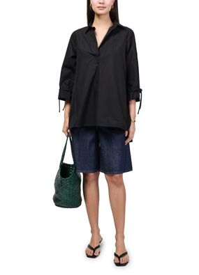 Reveal Max Mara's v-neck blouse, a refined top featuring three-quarter sleeves and a flattering neckline. The elegant silhouette and subtle detailing make it a versatile choice, easily paired with tailored pants or skirts for both professional and casual occasions.