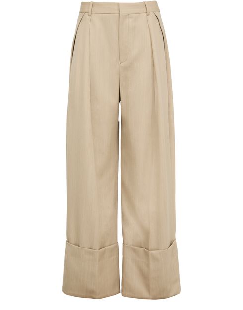 裤脚翻折阔腿裤