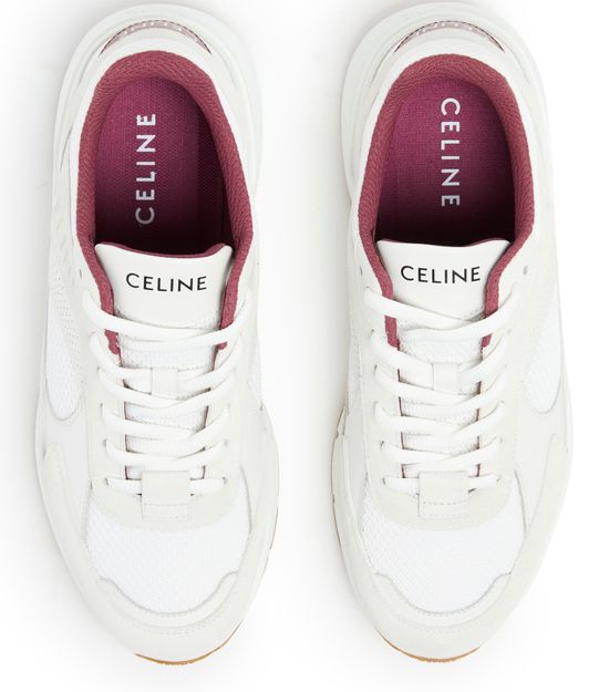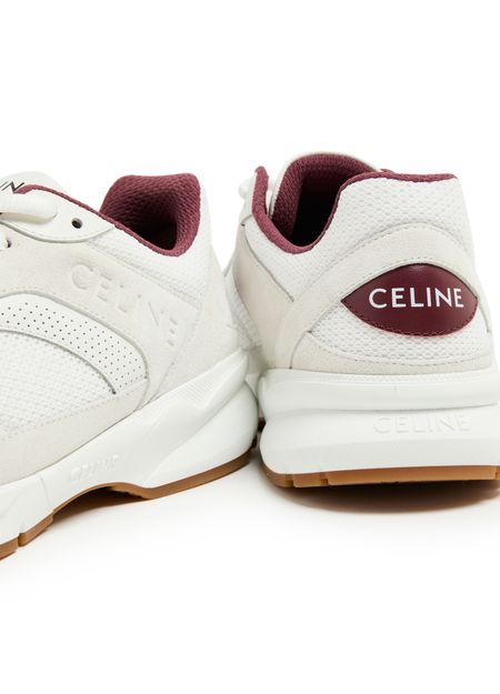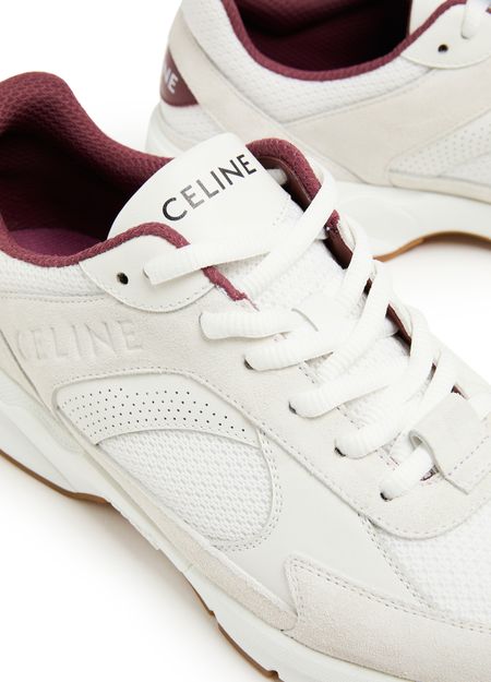 Experience effortless style with Celine's Runner CR-03 low lace-up sneakers. Featuring a round toe shape and graphic leather cut-outs on the sides, these sneakers showcase Celine's debossed logo elegantly on the external side. With polyester laces and the "CR-03" nomenclature subtly debossed, every detail exudes sophistication and modernity.