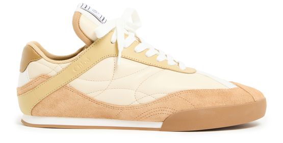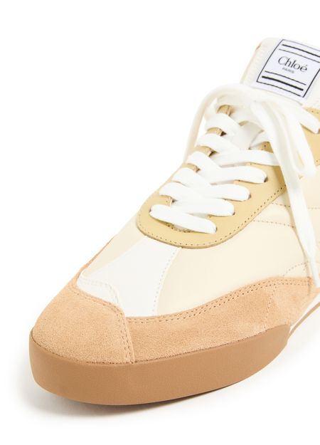 Chloé's Kick sneakers showcase a stylish round toe design with visible stitching that highlights their craftsmanship. Featuring a printed logo on the tongue and an appliquéd logo on the side, these flat, closed sneakers offer comfort with a logo-printed insole. An engraved logo at the back adds a touch of elegance.
