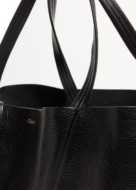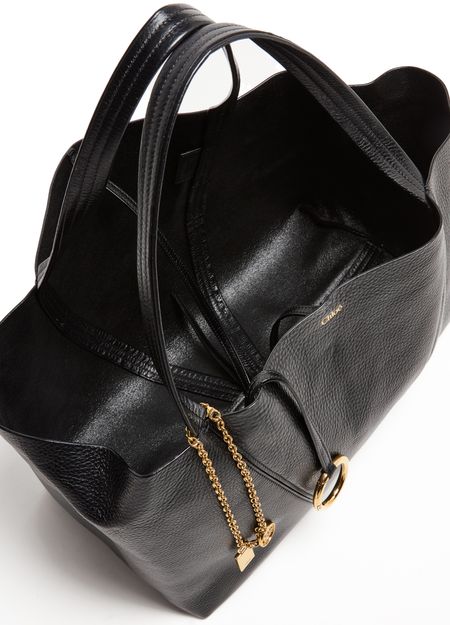 Reveal Chloé's Spin tote bag, crafted from grained leather and adorned with a signature 'Spin' fastener. The gold-finish metal horse medallion and front logo in gold letters add refined detail, while double handles and a spacious interior compartment ensure both style and practicality.