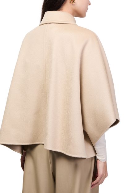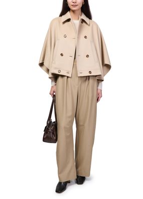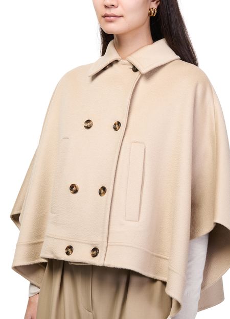 Reveal Max Mara's double-breasted cape, crafted with topstitched edges and a refined button fastening. The long sleeves and meticulous detailing offer a sophisticated silhouette, making this piece a versatile addition for both day and evening ensembles.