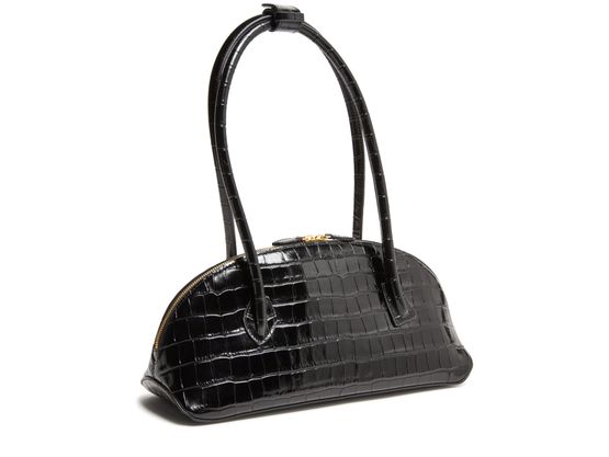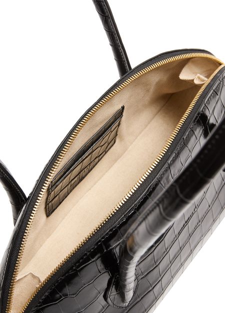 • 描述 : Shoulder bag, double handles, leather handle, crocodile-embossed leather, zipper closure, interior patch pockets, fabric, visible topstitching, padded texture.