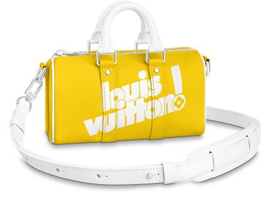 Keepall XS 手袋浓缩 1930 年代路易威登 Keepall 手袋的经典构型,此次由 Virgil Abloh 标注全新 louis vuitton! 标识。皮革包身搭配顶部手柄和可调节肩带,手提或肩背皆宜。