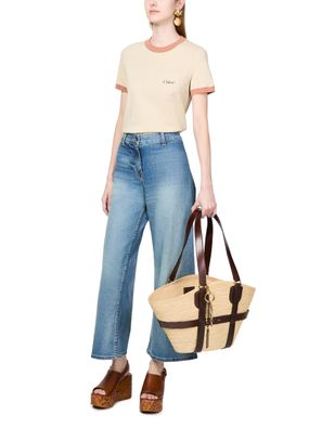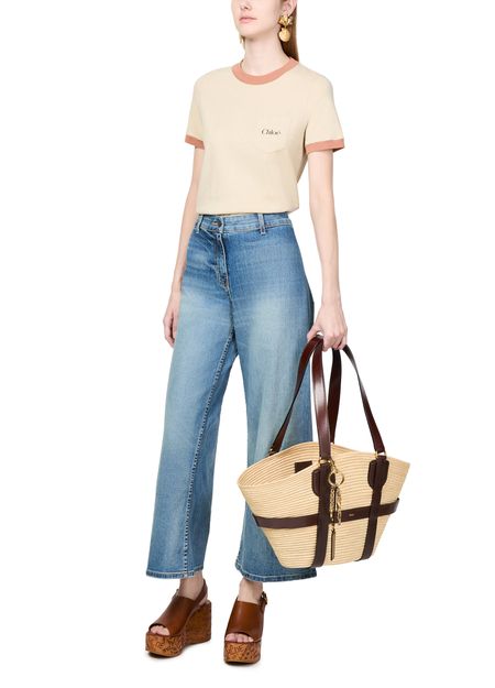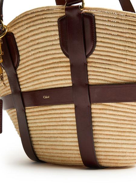Introducing Chloé's Kerala 25 basket, a versatile piece perfect for those who appreciate elegance. This basket features visible topstitching and gold finish, complemented by the brand's logo in gold letters. Carry it by hand or on the shoulder with its double handles and thin strap, adding a touch of sophistication to your wardrobe.