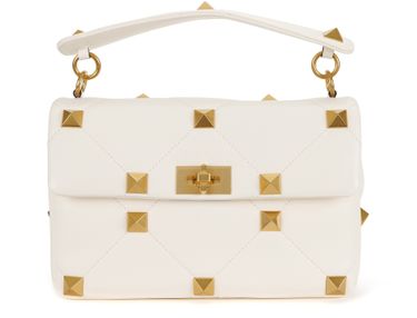 Valentino 品牌的精湛技艺尽显于此款 Roman Stud 链带包之上。 其马特拉斯纹设计及金属饰面均散发出现代精致的时尚造型特色。