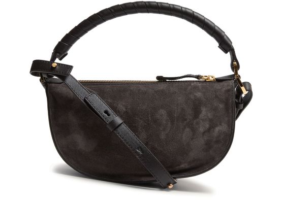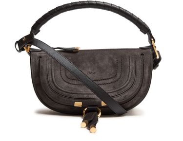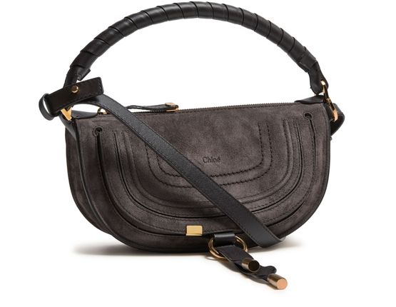 Reveal Chloe's Marcie shoulder bag, crafted in sumptuous suede with signature saddle stitch detailing. The adjustable, detachable thin strap and single handle offer versatile styling, while the gold finish hardware and front embossed logo add a refined touch. Interior pocket and zipper closure ensure both elegance and practicality.