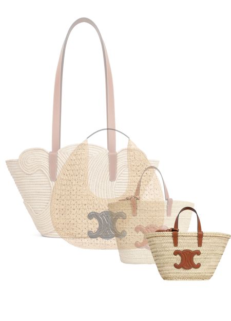 Unveil Celine's Nano Triomphe Celine classic panier in raffia and calfskin. This tote bag showcases a magnetic closure, appliquéd logo, and elegant double handles. With its gold finish and contrast stitching, it is perfect for shoulder wear or hand carry, offering timeless sophistication.