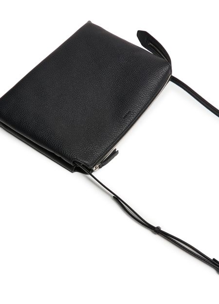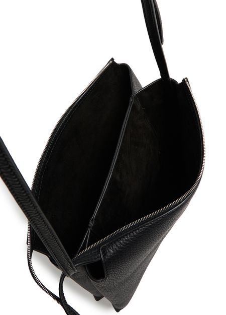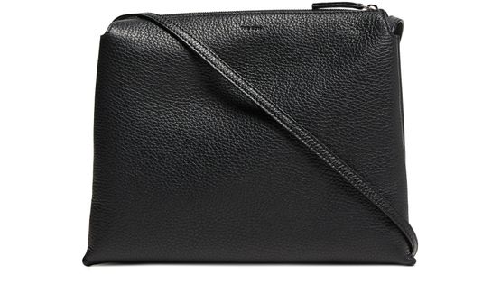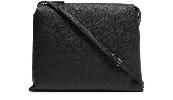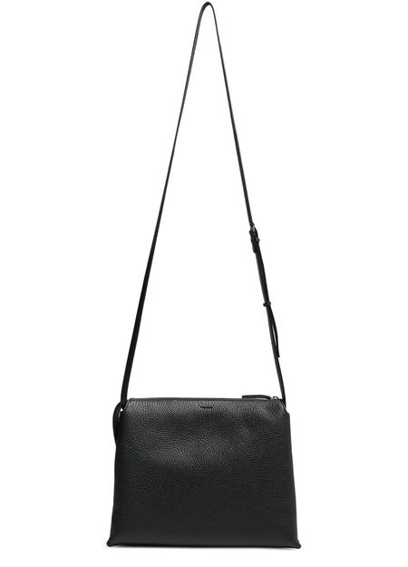 Reveal The Row's Nu Twin crossbody bag in leather, crafted from exquisite grained leather. This stylish accessory features an adjustable thin strap, providing versatility and comfort. The visible topstitching and front logo add a touch of elegance, while the secure zipper closure ensures your essentials are kept safe.