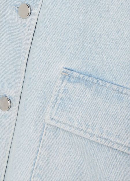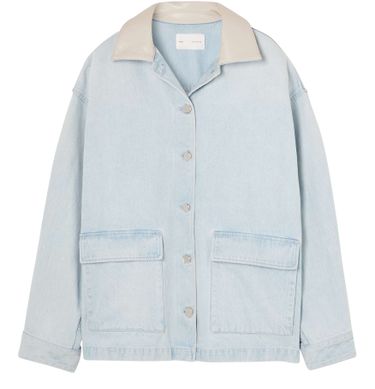 An oversized field jacket made of 67% regenerative cotton, 22% Lyocell, 11% postconsumer recycled cotton comes in a Washed Pale Indigo – a muted, timeworn shade - balancing softness and utility with a vintage, worn in look. Finished with custom made silver shank buttons and a recycled leather ivory collar.