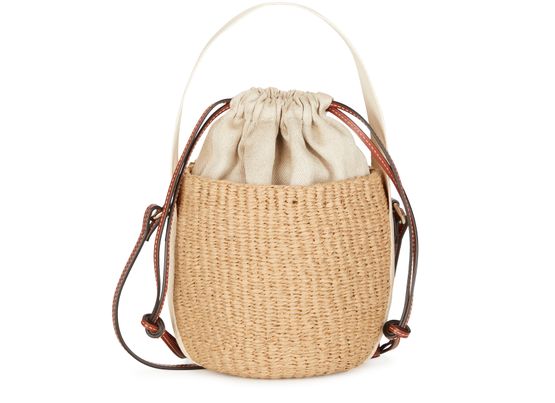 - 描述 : 细肩带, 帆布手柄, 编织设计, 抽绳滑动开合, 单开隔层, 压印品牌标识, chloé 提花字母字样, 手提、单肩或斜挎, 手工缝制, 藤篮尺寸及饰面可能会有所不同.