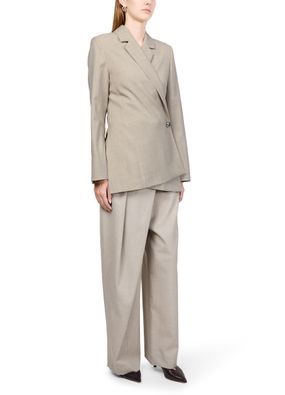 Reveal Loewe's wrap trousers in wool, crafted to perfection. These formal pants offer a sleek ankle-length design with elegant front pleating and a distinctive embossed leather patch. Perfectly tailored for versatility, they feature a back pocket and belt loops, with a logo detail accentuating the rear.