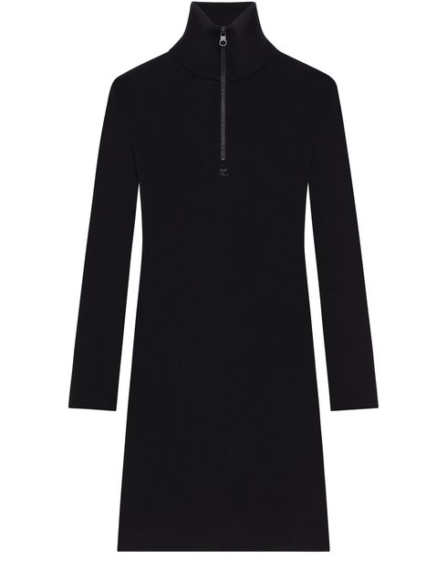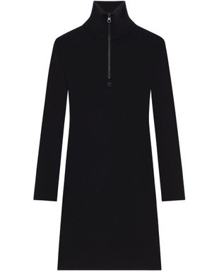 Reveal Courreges's zipped mockneck dress, a sleek knitted piece with long sleeves and a chic mockneck. Its mini length and elegant zipper closure make it a standout choice for any occasion, combining comfort and style effortlessly.
