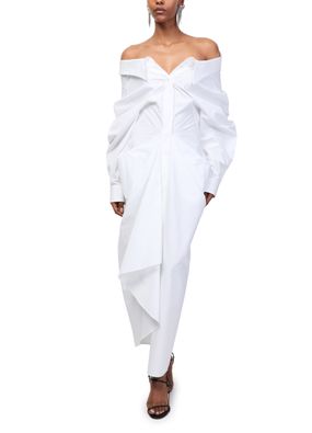 Reveal Givenchy's ruffled sleeve maxi shirt dress, a striking backless silhouette with short sleeves and delicate ruffle accents. The flowing length and refined shirt dress structure create a modern statement, perfect for elevating your day-to-evening wardrobe with effortless sophistication.