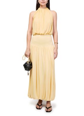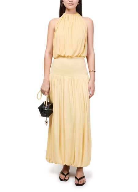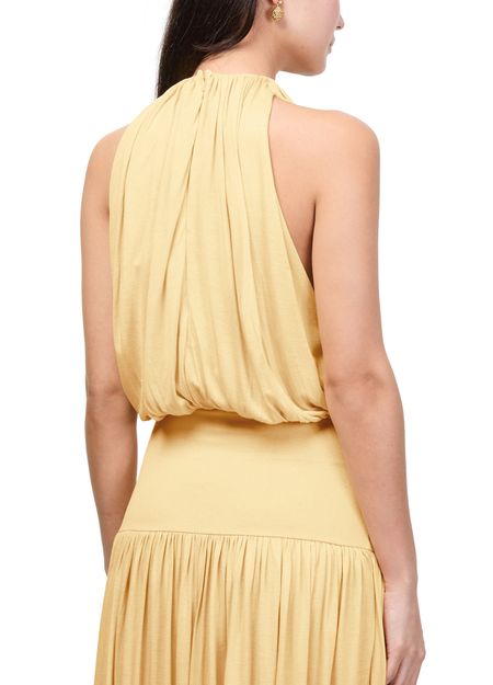 Reveal Toteme's draped dress, a sleeveless silhouette that exudes modern refinement. The fluid lines and artful draping create a striking look, perfect for both daytime sophistication and evening allure. Experience effortless elegance with this versatile piece designed to make a statement.